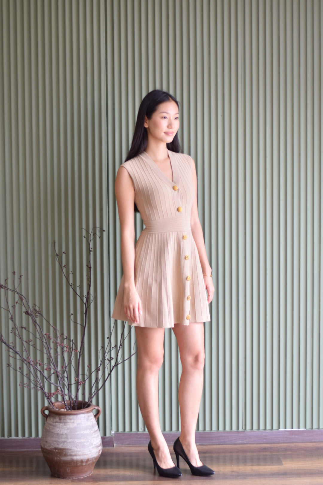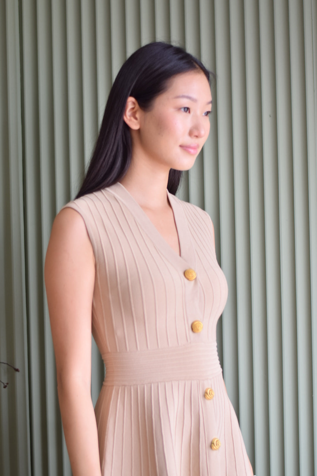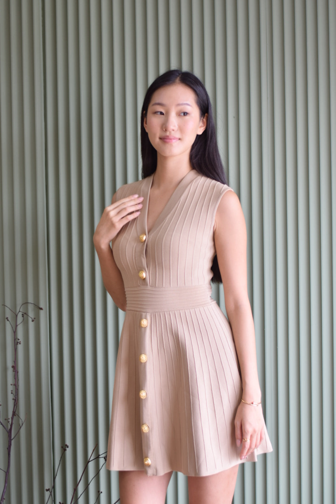 Indulge in luxurious elegance with our Liz Knit Dress. Featuring gold buttons and a versatile day to night style, this dress will elevate your wardrobe to new heights. Perfect for any occasion, this dress is a must-have for the sophisticated and exclusive.